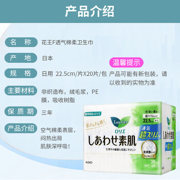 日本花王乐而雅素肌F系列日用卫生巾22.5cm*20片*1包