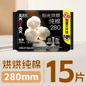 高洁丝【纯棉NO.1】阳光烘烘卫生巾280mm15片日用姨妈巾京东自营旗舰