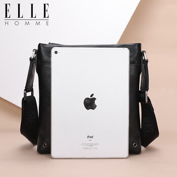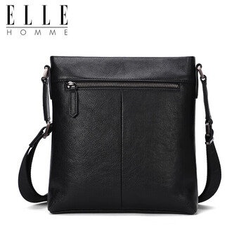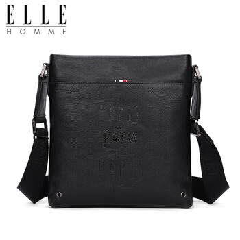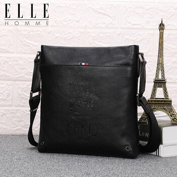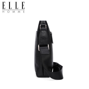 ELLE HOMME 商务男士单肩包 头层牛皮时尚斜挎包大容量竖款男包01941黑色生日礼物送男友