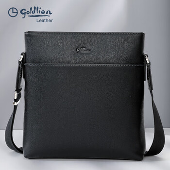 金利来单肩包头层牛皮斜跨包商务男包竖款日字包 生日礼物送礼