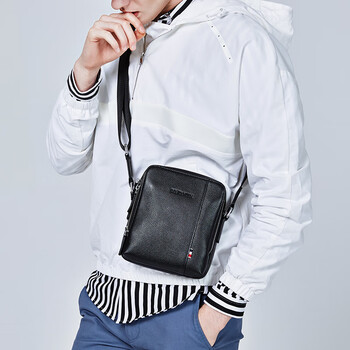 波斯丹顿单肩斜挎包男士商务小方包头层牛皮竖款潮流迷你小背包挂包