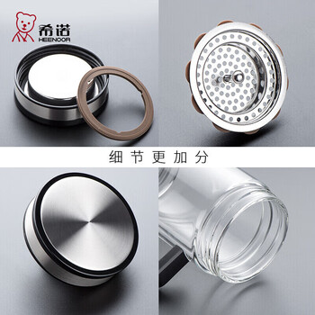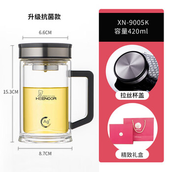 希诺抗菌玻璃杯双层带把手泡茶杯子男高档家用办公水杯XN-9005K 420mL