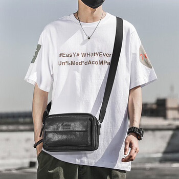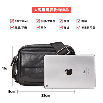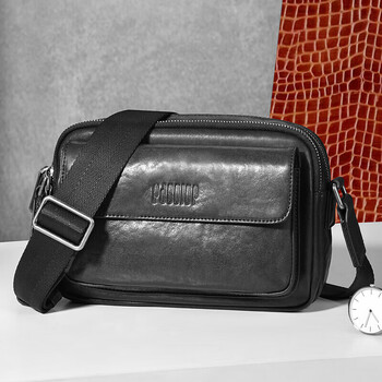 派保爵男包真皮单肩斜挎包头层牛皮潮流单肩包百搭时尚横款个性小背包