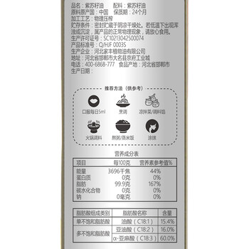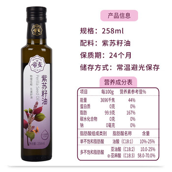 帝麦 食用油 紫苏籽油 苏子油 苏麻油258ml 热门商品