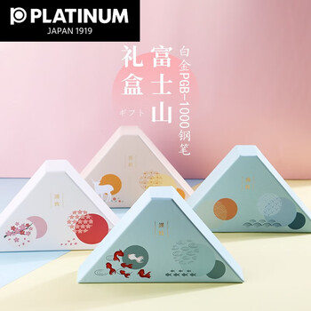白金钢笔PGB-1000富士山盒绘套装彩色铝合金钢笔/墨水笔铱金 F尖细字白杆 白鹿