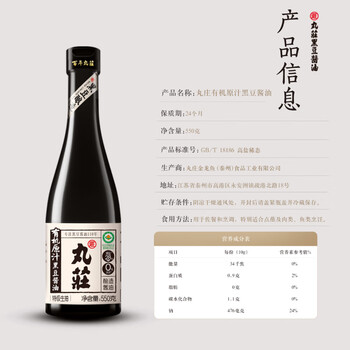 丸莊丸庄有机原汁黑豆酱油550g【有机 特级生抽 0添加】点蘸煎炒炖煮
