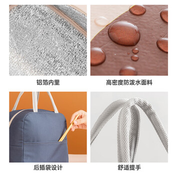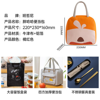 班哲尼 饭盒袋便当袋便当包保鲜提饭包多功能手提式带铝箔保冷保温包储奶袋包饭盒收纳袋收纳包 橘红色