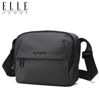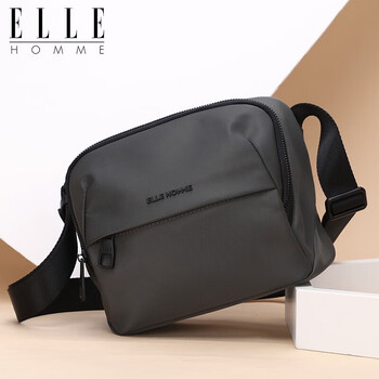 ELLE HOMME男士单肩包 潮流轻便帆布斜挎包 防泼水休闲手机包男包08332灰色生日礼物送男友