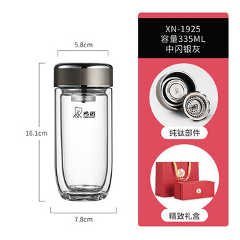 希诺抗菌玻璃杯双层办公水杯男高档泡茶杯子XN-1925中闪银灰 335mL