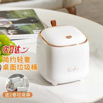 ABEPC桌面垃圾桶1.5L按压式弹盖办公桌北欧风小号垃圾桶收纳筒白金