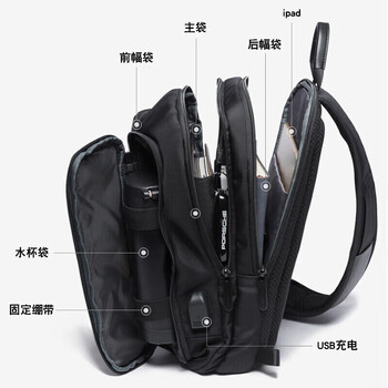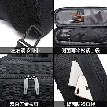 班歌 胸包男旅行单肩包商务休闲多隔层大容量百搭11英寸平板斜挎包黑