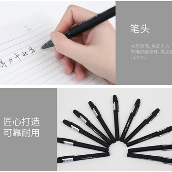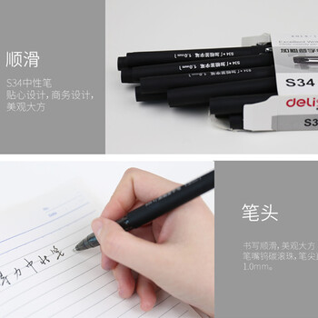 得力(deli)中性笔S34黑色1.0mm加粗水笔签字笔商务办公文具学生考试用笔12支装