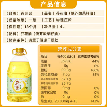 苍茫谣(CangmangYao)【保真菜籽油】芥花油非转基因低芥酸4L一级压榨食用油国企出品