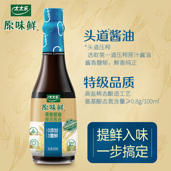 太太乐特级酱油 原味鲜系列 蒸鱼豉油450ml【特级酱油】0添加 蒸鱼白灼