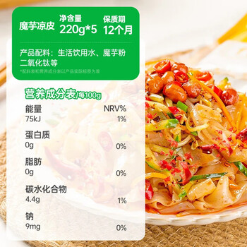 云山半魔芋凉皮魔芋面低卡0脂肪即食免煮代餐速食健身饱腹轻食品220g*5