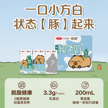 三元小方白脱脂纯牛奶200ml*24盒