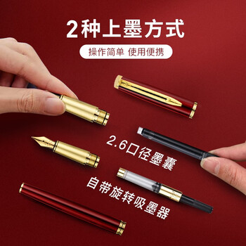 梦特娇(MONTAGUT)【马年礼物】钢笔宝珠笔美工笔三笔头墨水套男女士生日礼物商务办公签字笔睿智系列金属红