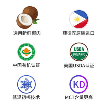 椰来香有机天然冷压榨椰子油1.5L 菲律宾进口 烹饪烘焙可护肤发食用油