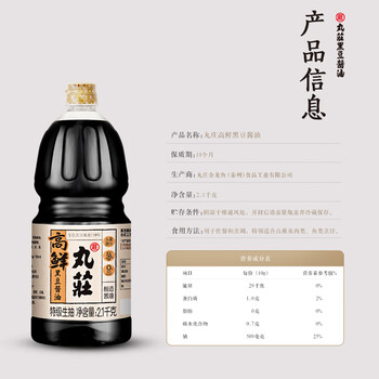 丸莊丸庄高鲜黑豆酱油2.1kg【特级生抽 0添加防腐剂】炒菜凉拌点蘸