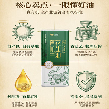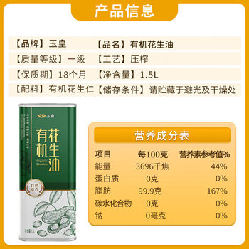 玉皇【中华老字号】有机原香花生油 1.5L 当季山东新花生