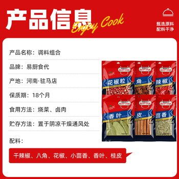 易厨食代卤肉香料套装6袋组合花椒大料八角香叶桂皮茴香干辣椒炖肉料195克
