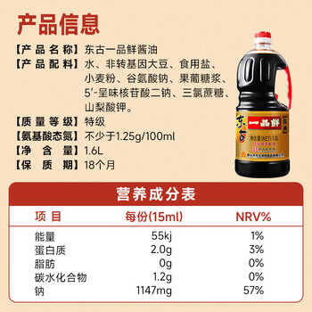 东古一品鲜酱油1.6L*1瓶