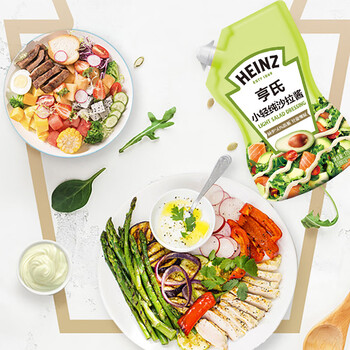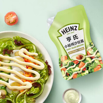 亨氏(Heinz) 沙拉酱 小轻纯沙拉脂肪减半蔬菜水果沙拉寿司酱175g*3袋