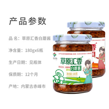 草原汇香 蘑菇酱 180克*6瓶草原白蘑酱 原味+辣味拌饭蘑菇酱香菇酱