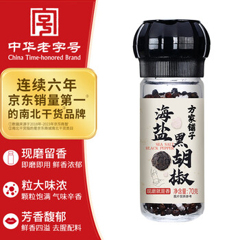方家铺子中华老字号 研磨瓶海盐黑胡椒粒70g/瓶 香辛料烹饪西餐牛排调味
