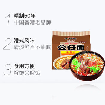 公仔面 红烧牛肉味方便面 5联包 500g 汤面早餐夜宵方便速食泡面
