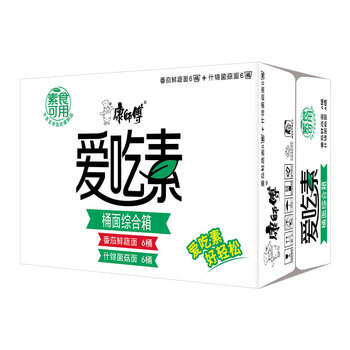 康师傅方便面爱吃素番茄鲜蔬面6桶+什锦菌菇面6桶整箱装方便面休闲零食 1箱