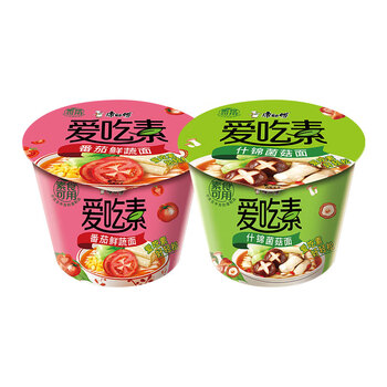 康师傅方便面 爱吃素 番茄鲜蔬+什锦蘑菇106g*12 泡面混合口味整箱 素食