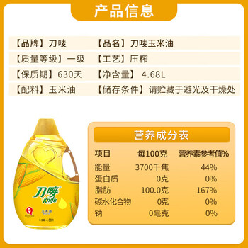 刀唛(Knife)玉米油4.68L 非转基因物理压榨一级食用油 香港品牌