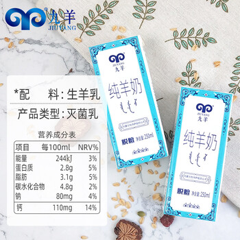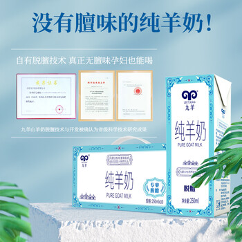 九羊(jiuyang)深度脱膻纯羊奶250ml*10礼盒全家营养无蔗糖无添加新鲜日期年货