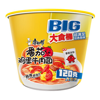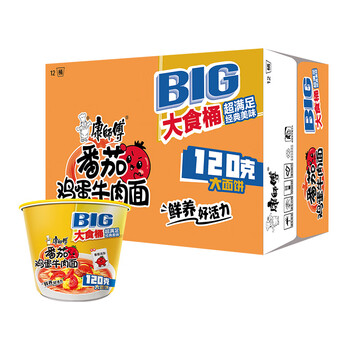 康师傅 方便面 大食桶番茄鸡蛋牛肉桶面163g*12 泡面整箱速食 方便食品