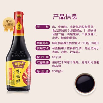 味事达 味极鲜 特级酱油800ml*2瓶/组