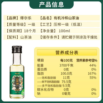 得尔乐压榨一级有机油茶籽油100ml × 1