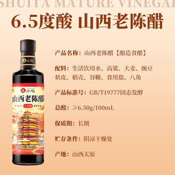 水塔山西老陈醋6.5度500ml 10陈酿【19777标准】家用食醋凉拌调味蘸料