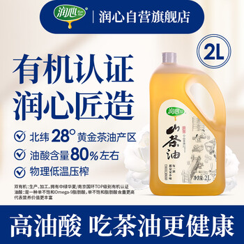 润心【保真山茶油】 有机油茶籽油 低温冷榨一级 原香小榨 食用油*2L