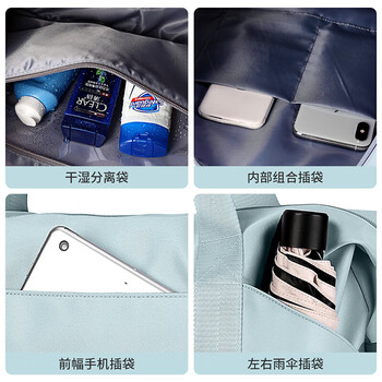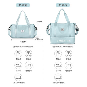 Landcase手提旅行包女大容量行李包可扩容收纳包干湿分离健身包2104浅蓝色