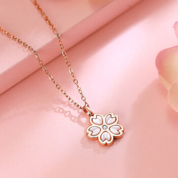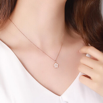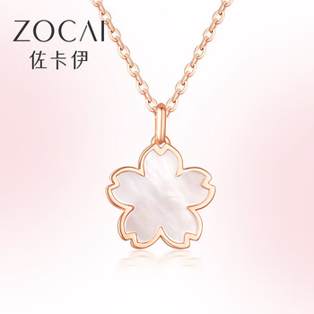 佐卡伊 钻石吊坠玫瑰18K金樱花白贝母项链简约百搭 D06984