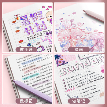 简繁6色双头荧光笔考试复习划重点标记笔 彩色护眼记号笔大容量水性手账笔开学文具礼物 甜系6支+贴纸
