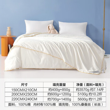水星儿童蚕丝被100%桑蚕丝二合一被子A类四季通用被芯约7.1斤150*210cm