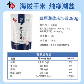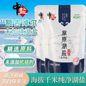 中盐 草原湖盐280g*2【未加碘】玉晶盐 一级湖盐 吃好盐选中盐