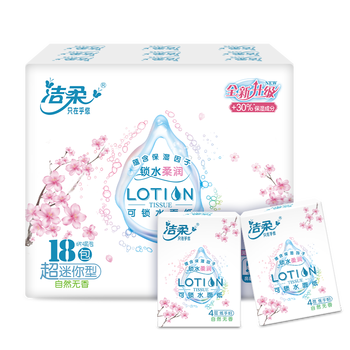 洁柔手帕纸Lotion4层6片*54包纸巾小包樱花系列保湿精华母婴可用