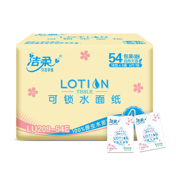 洁柔(C&S)Lotion手帕纸 加厚4层6片面巾纸18包*3条 (共54包)樱花系列(全新升级抽纸 更多进口保湿精华 擦拭肌肤不干燥)*1箱