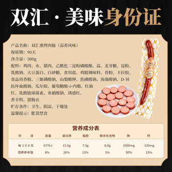 双汇 熏烤肉肠300g 蒜香风味熏烤肉肠 火腿肠 休闲零食 香肠露营 速食