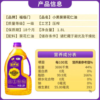 福临门营养家 黄金小黑葵葵花仁油1.8L*1
