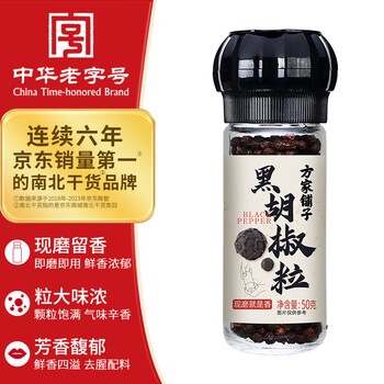 方家铺子中华老字号 研磨瓶黑胡椒粒50g 西式烹饪烧烤牛排烹饪调味料