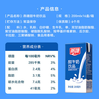 燕塘 甜牛奶饮品 200ml*16盒 礼盒装 营养早餐伴侣